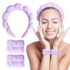 Hroevc 3 PCS Spa Headband and Wristband Set for Washing Face, Terry Cloth Facial Puffy Makeup Headband for Women (Purple)