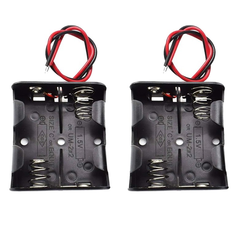 hrsyyl 2pcs C Size Battery Holder 2 Slots 2X C Cell Battery Holder 2X 1.5V C Size Battery Case Box with Wire
