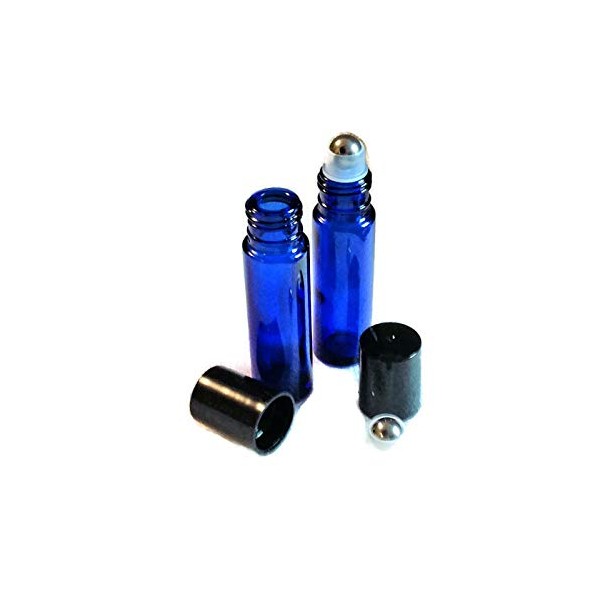 HS HEALTHY SOLUTIONS GLASSWARE USA - 10ml Cobalt Blue Glass Roll On THICK Bottles (24) with Stainless Steel Roller Balls - Refillable Aromatherapy Essential Oil Roll On (24)