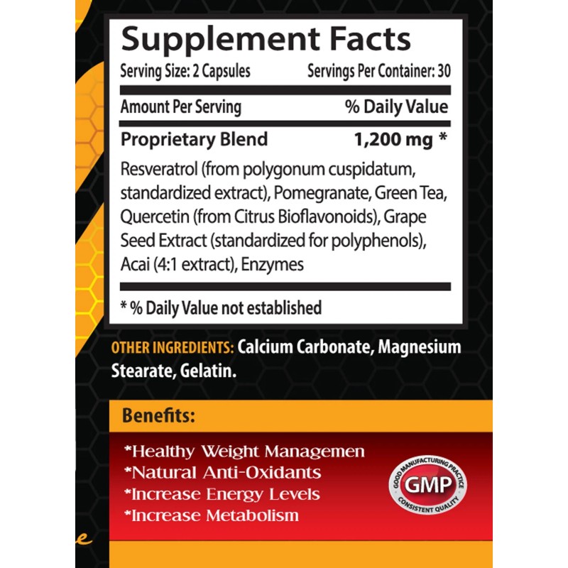 HS PRIME Body vitality - RESVERATROL NATURAL FORMULA - Cellular enhancement 2 Bottles