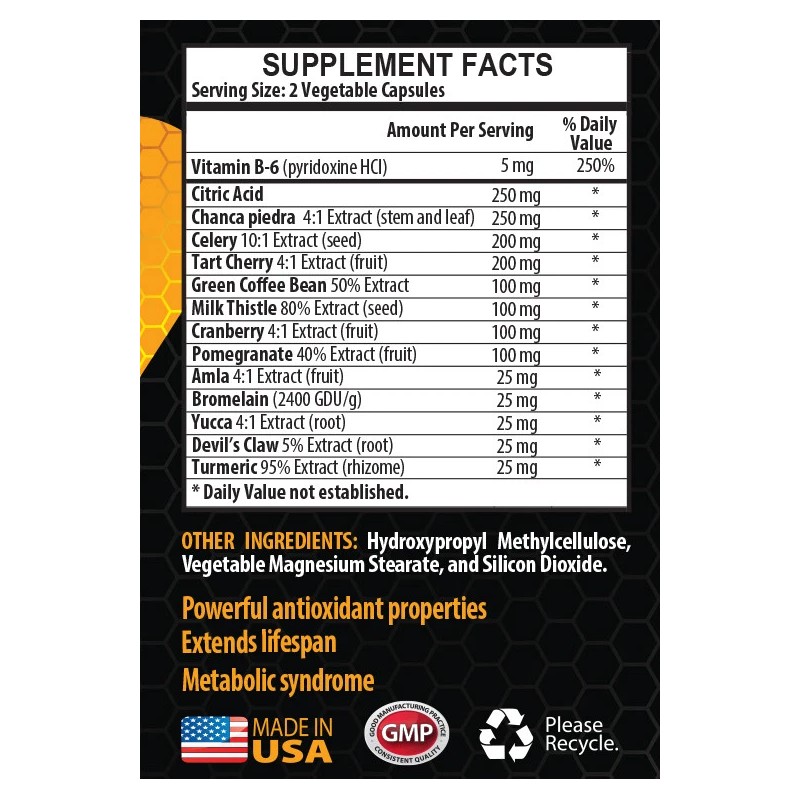 - Active Ingredients: Pomegranate, Korean Ginseng, L-LYSINE, MORINGA OLIEFERA, Maca, Ginseng, L-Theanine, Saw palmetto, L-Tyrosine, URIC ACID FORMULA, CRANBERRY, TART CHERRY, CELERY, CHANCA PIEDRA, Melatonin, Garcinia Cambogia