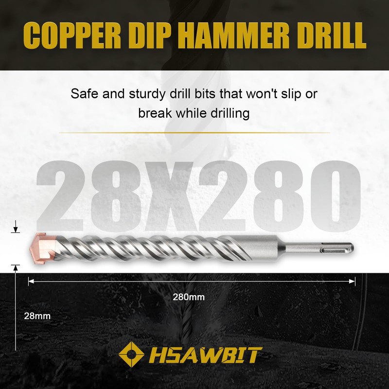 - Package Contains: 1 pc 28mm x 280mm masonry drill bit