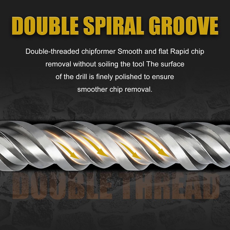 - Higher efficiency: this masonry drill bit has optimized double spiral geometry, the efficient removal of Chips and deposits possible.