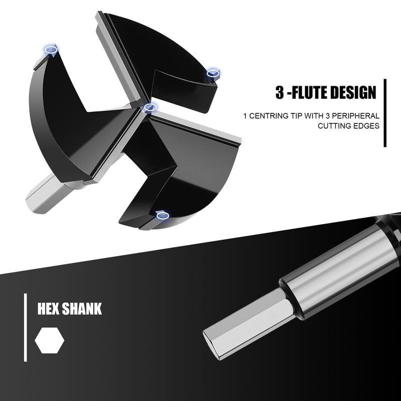 3. The tip is specially designed to cut through hole cleanly, great for boring concealed hinges and door clocks.