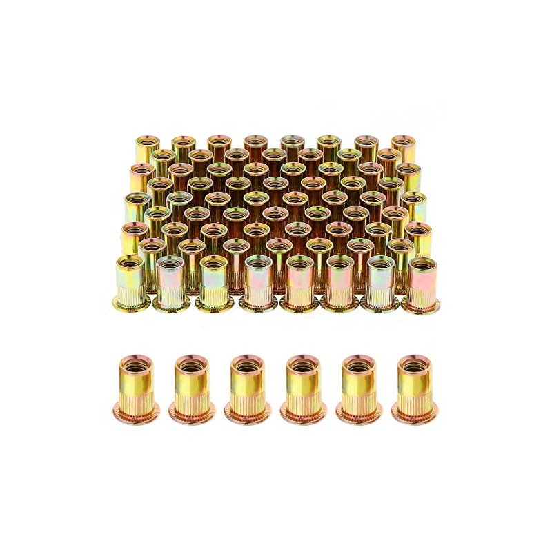 HSEAMALL 100PCS M8 Rivet Nut Zinc Plated Carbon Steel Rivet Nut Tool,Flat Hea...