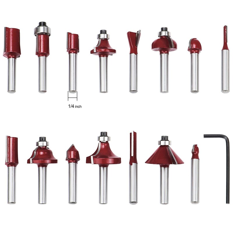 Color: 15pcs Router Bit Set 1/4 Inch Shank