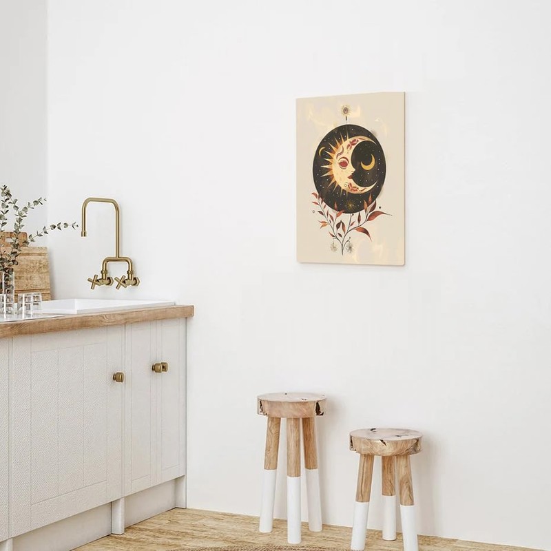 - THOUGHTFUL UNIQUE GIFT: This Sun and Moon print is a perfect addition to spaces decorated in bohemian, mystical, celestial, or even vintage-inspired styles. It serves as a beautiful focal point in bedrooms, meditation areas, living rooms, or any space where you wish to cultivate a sense of peace, wonder, and connection to the cosmos. It also makes a thoughtful and unique gift for anyone drawn to celestial themes, astrology, or boho decor. Add this touch of moonlit and sunlit magic to your home