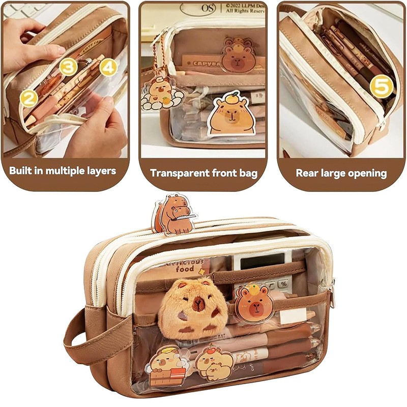 2. Our capybara pencil case has an integrated multi-layer storage space that can be flexibly classified and is convenient so you can quickly remove daily necessities. This capybara pencil case has a large opening design that allows you to easily organise items, so you can remove the necessary items efficiently and quickly.