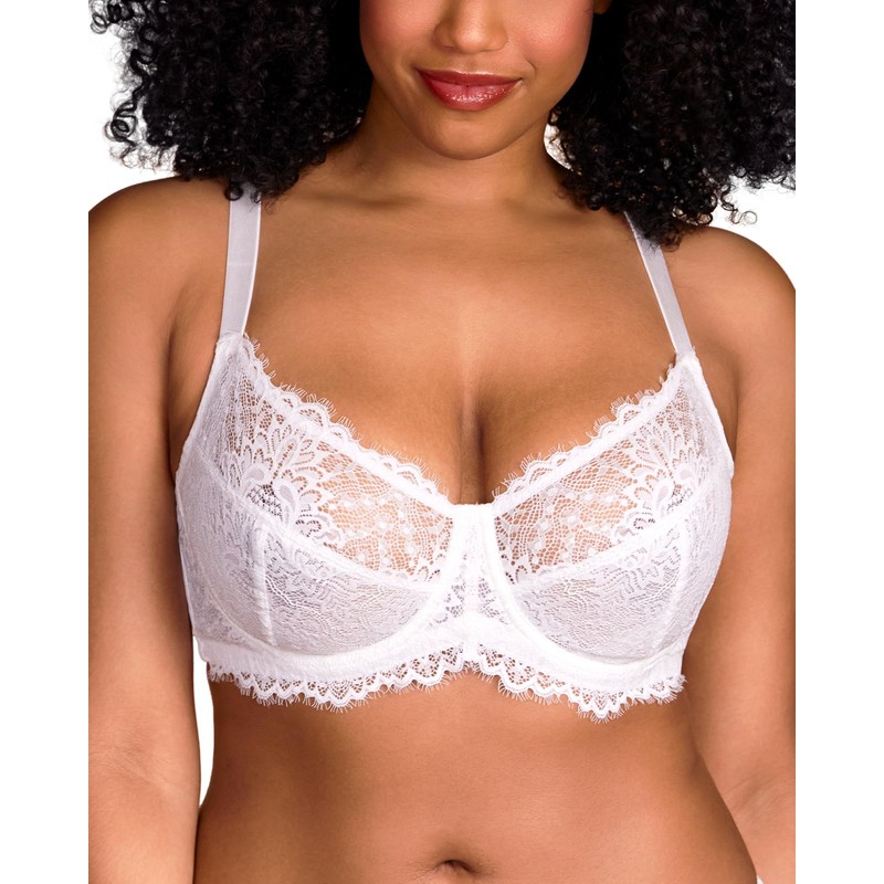HSIA Minimizer Bra for Women - Plus Size Bra with Underwire Woman's Full Coverage Lace Bra Unlined Non Padded Bra White