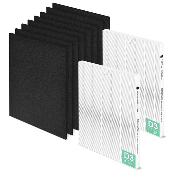 - [2-IN-1 Filtration]: (1) Act1vated Carbon Pre-Filter (2) H13 Grade True HEPA Filter. D3 filter replacement is perfect for households with pets, cooking, and smokers, as it effectively purifies the air in your home—no unpleasant scents, just pure air