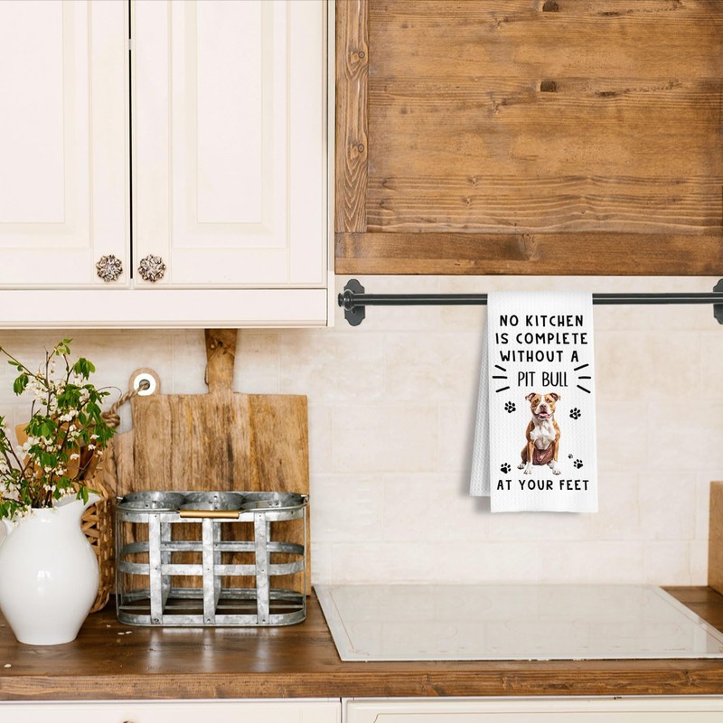 HSIASHENG Funny Pit Bull Hand Towels for Kitchen Home Bathroom Decor, A Kitchen is Not Complete Without A Pit Bull Dish Towel, Dog Lovers Gift, 16×24 Inch