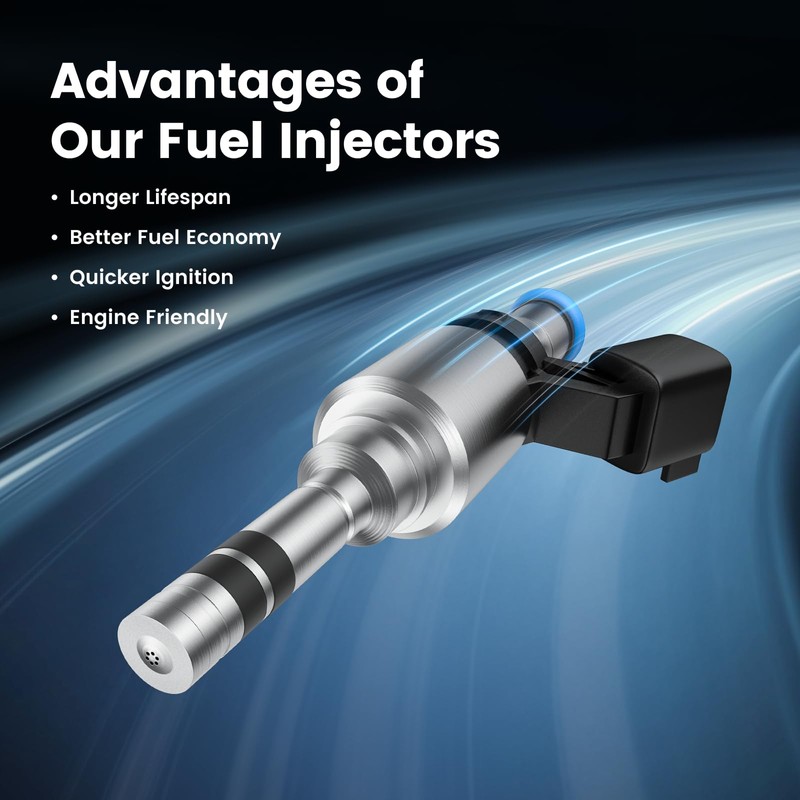 - Specification:Set of 4 high performance fuel injectors; 6 Injection holes as original part; Every fuel injector is tested before shipment; Direct replacement, easy installation; A long service life & stable working; Helps resolve idle issues, check engine light alerts, error codes, enhancing engine power, fuel efficiency
