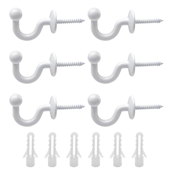 HSIXHAF 6 pieces curtain tieback hooks curtain holder wall metal white U-shaped end curtain holdback wall hooks ball end tieback hooks for curtains home decoration, including mounting sleeve