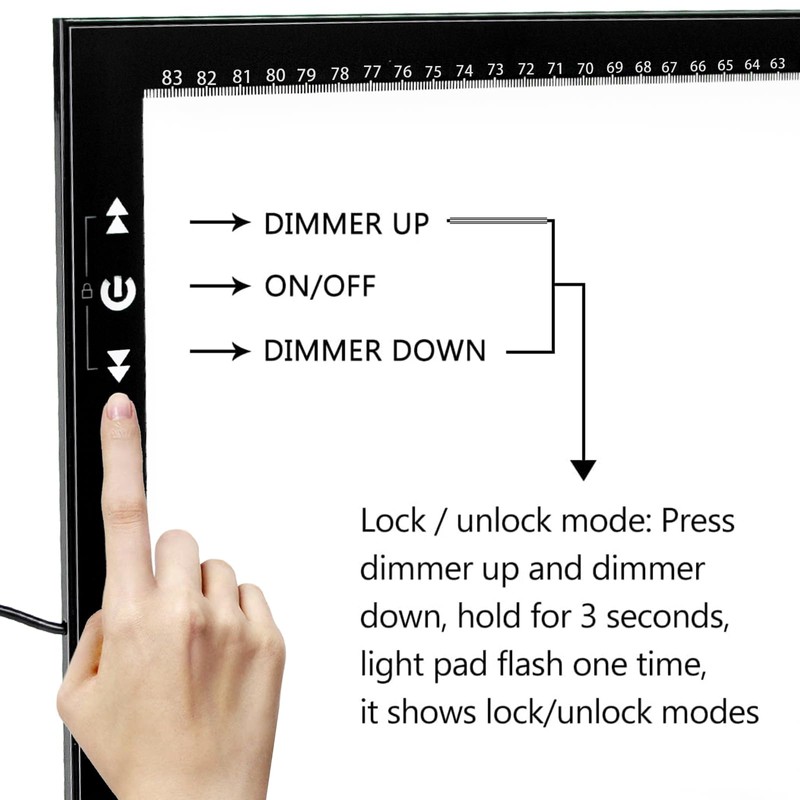 - Super thin 6.6mm A1 Artist Light Box Light Pad with Lock/Unlock Touch Dimmer Button, Max Bright led Light 4500 lux in the surface