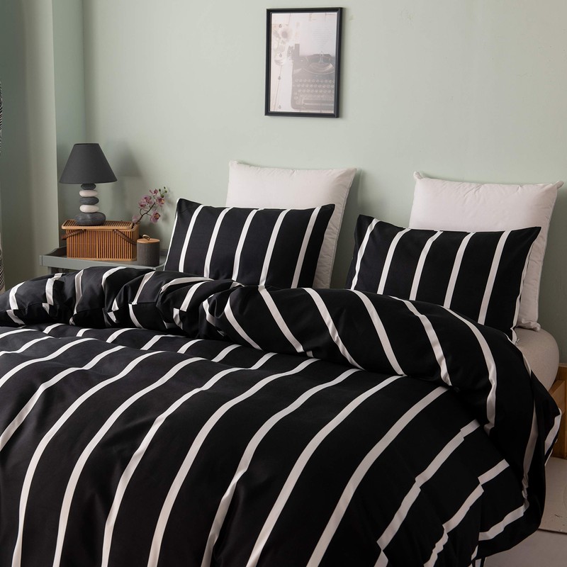 - 🌼Easy Care:Black and White Striped bedding set king,black bedding set king,striped bedding set,hotel bedding set,machine wash in cold water, gentle cycle, tumble dry at low heat, do not bleach.