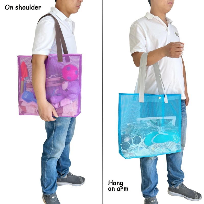 hsmyank 2Pack Large lightweight Simple Mesh Beach Tote Bag With snap Button R...
