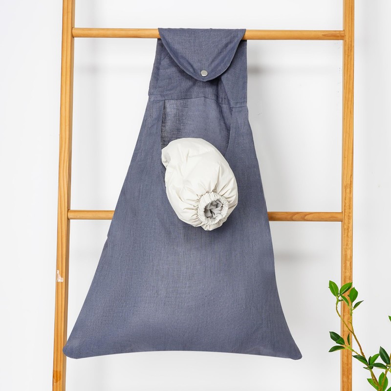 HSOFTIFY Hanging Linen Storage Bag 23.6x19.6 Inches, 100% Pure Flax Linen Household Storage Organizer Bag for Kitchen, Laundry Room, Bedroom, Navy Blue