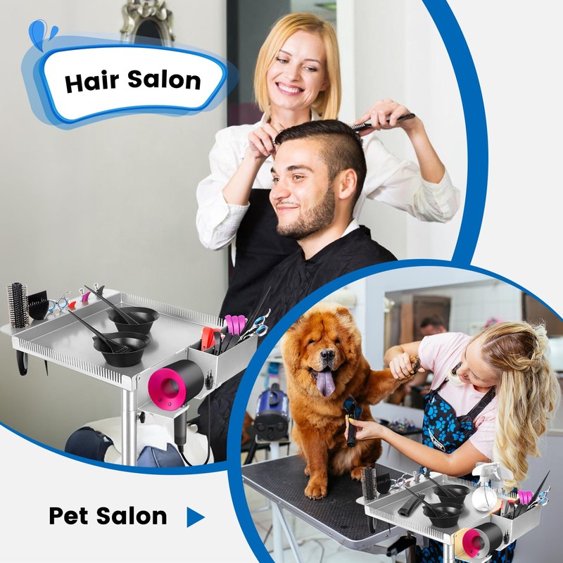HSONBIUTY Salon Rolling Tray on Wheels, Hairstylist Tray with Holder and Hair Separator Stand for Salon Station, Salon Tray Cart, Salon Trolley Cart for Salon&Home Use