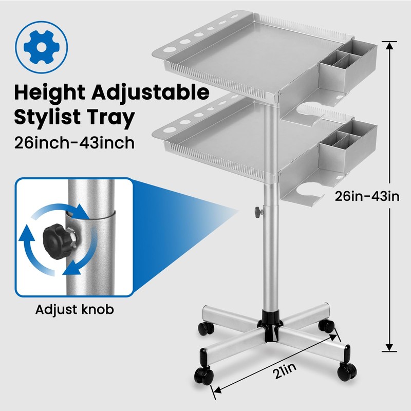 - 【Salon Color Tray】You can adjust the height of the hair salon cart from 26 to 43 inches with the knob. It's easy to operate whether you're working standing up or sitting down.