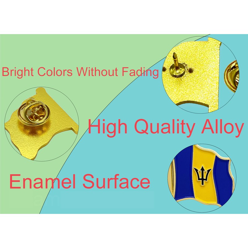 HSQCEZ 4 Pack Barbados Flag Lapel Pin - Barbadian Flags Pins Lapel Hat Backpacks Suit Decoration & Men Women Waving Patriotic Enamel Metal Badge Souvenir
