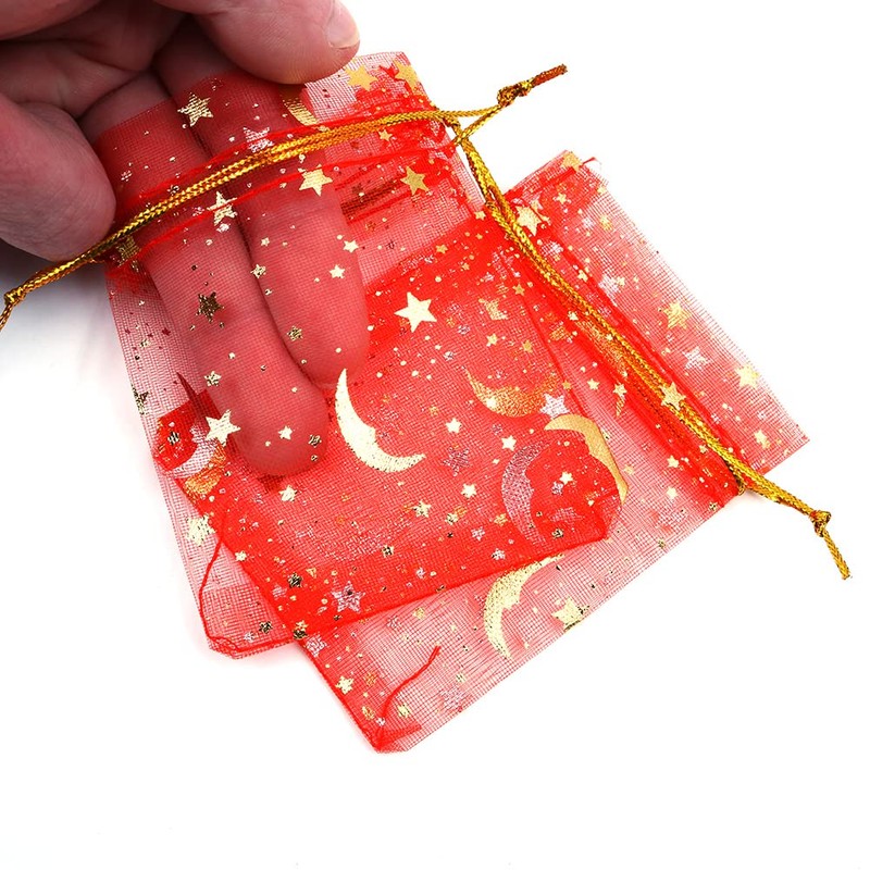 - The organza bags are printed with Moon Stars, delicate and beautiful, the Christmas element gives you a full Christmas atmosphere, brings you happy and impressive Christmas memory.