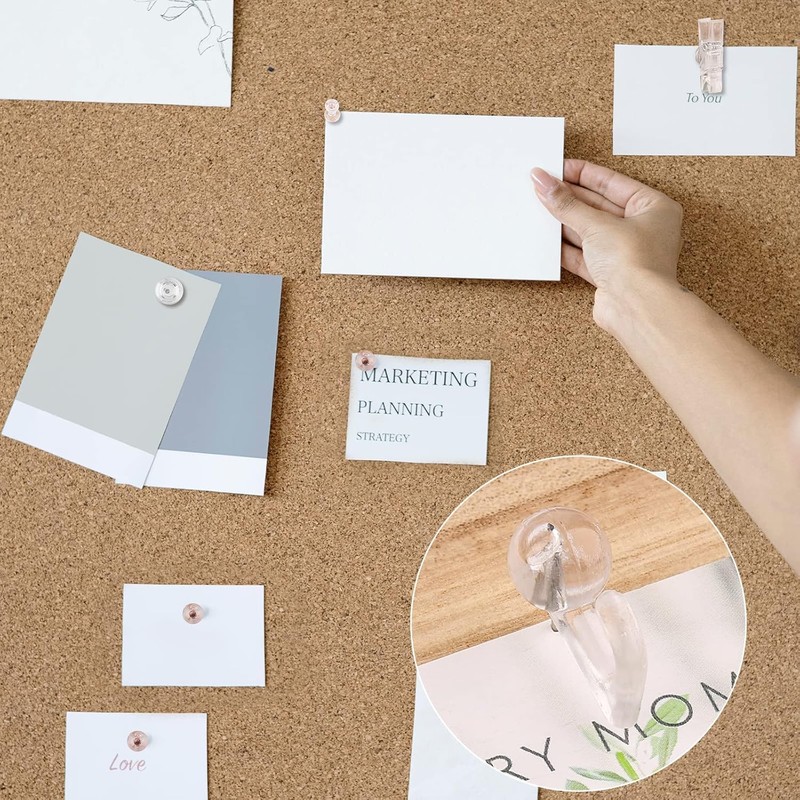 These push pins are perfect for holding documents, notes, maps, photos, posters, memos, calendars, etc...The surface is smooth, and the pins can be fixed without affecting the overall appearance.