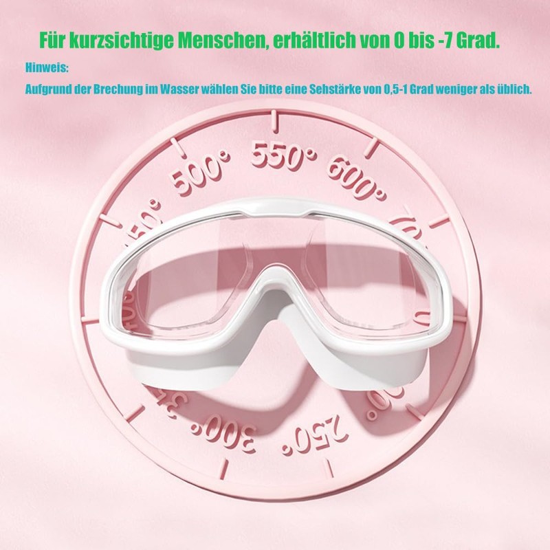 - For myopia: 0 to -7 degrees myopia (white, black). Due to underwater refraction, we choose lenses that are -0.5 to -1 degrees below your usual eyesight. We offer ten sets of nose clips and earplugs in different colours. You can choose your favourite colour and will not be confused with the colours of your friends when swimming!