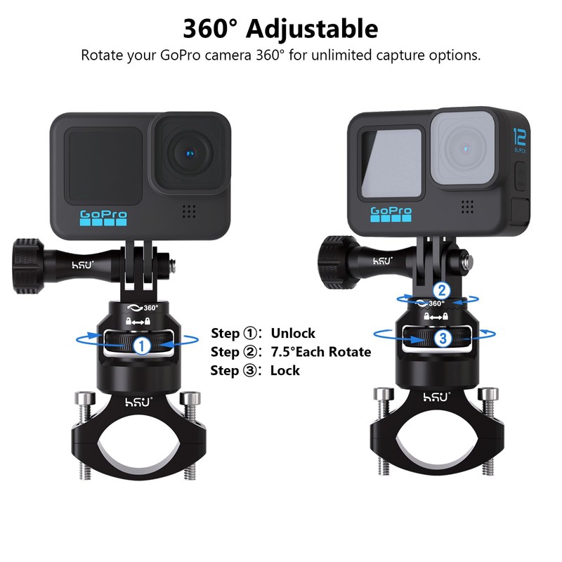 - 360° Adjustment: The bar mount features 360° rotation(7.5° for each rotation), ensuring the perfect angle for every shot and allowing rapid changes in perspective for more dynamic footage.