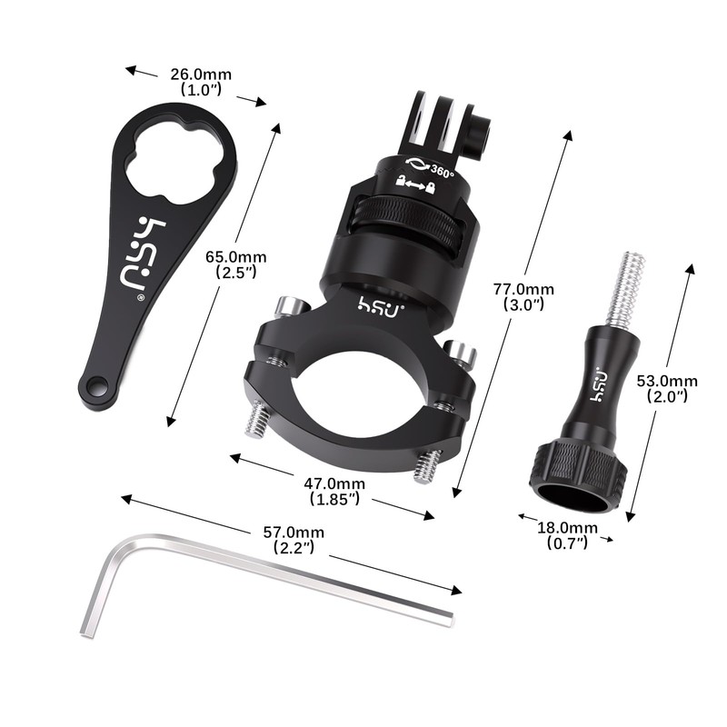 • 360° Adjustment: The bar mount features 360° rotation(7.5° for each rotation), ensuring the perfect angle for every shot and allowing rapid changes in perspective for more dynamic footage.