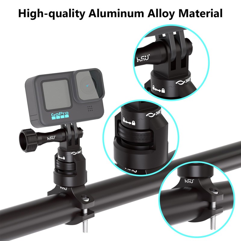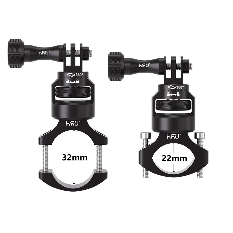 HSU Bike Handlebar Clamp Mount Motorcycle Pole Mount Compatible with Go Pro Insta 360 Osmo Action Cameras - 360 Degree Rotation (Black)