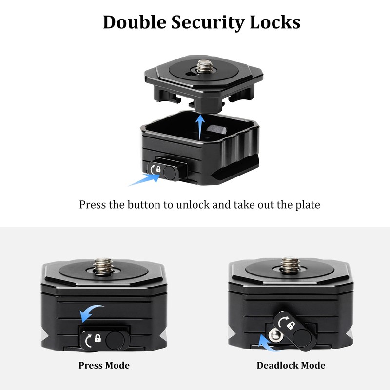 - Sturdy & Lightweight: The quick release plate is made of high-quality aluminum alloy, rustproof, rugged and durable, lightweight and stable, it weighs only 56 grams. Max load 11lb/5kg.