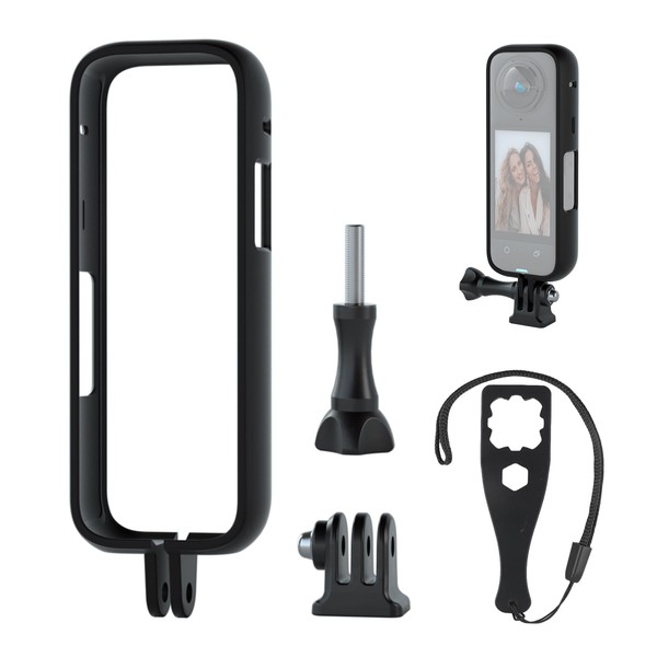 HSU Insta360 X4 Frame Case Protective Accessories Kit Protective Case with Quick Pull Movable Socket and Screws Tripod Adapter for Shooting Accessories such as Selfie Stick (Black)