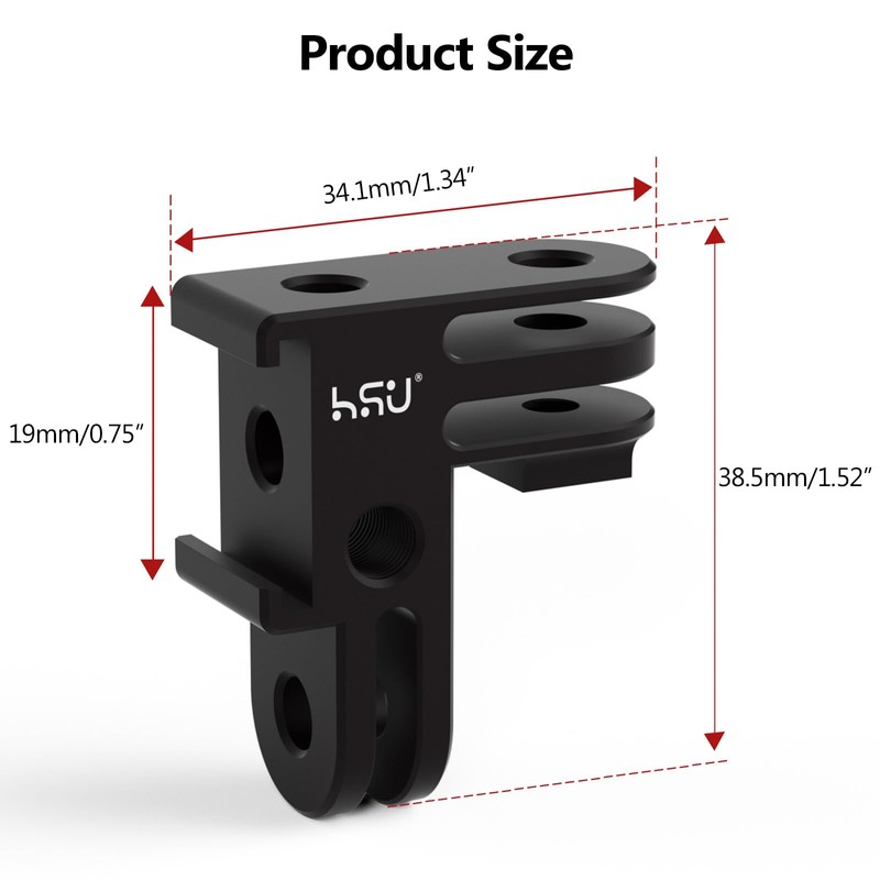 HSU Vertical Mount for GoPro, Aluminum 90 Degree Cold Shoe Direction Adapter, 1/4"-20 Screw Hole Tripod Mount for GoPro Hero 13/12/11/10/9/8/7/6, DJI Osmo Action 4/3 AKASO Action Camera and More