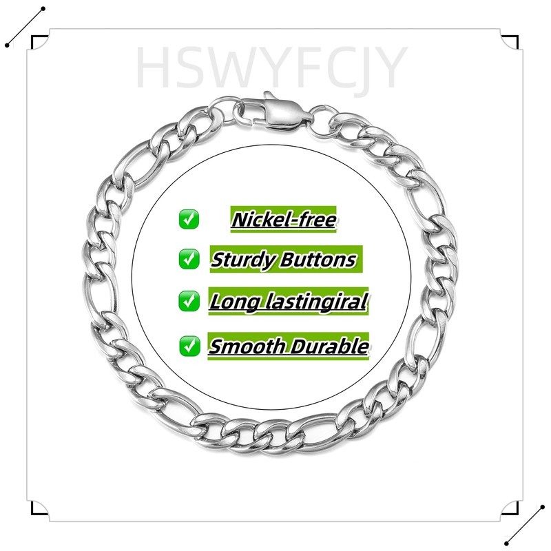 - √Material: This 316L stainless steel men's bracelet is durable. Lead-free and nickel-free, this Figaro chain bracelet is hypoallergenic for a comfortable wear. In addition, the bracelet is waterproof and will not fade, and can be worn all day long.