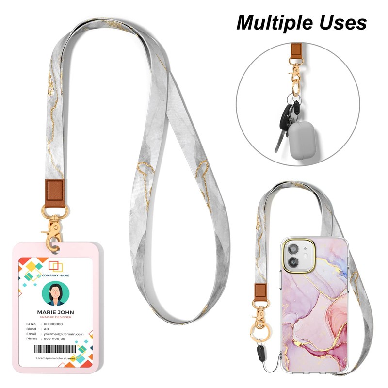 Hsxnam Neck Lanyard Key Chain, Long Lanyard Strap Keychain Holder for Women Men Car Keys ID Badges Card Wallet Phone Camera, Gray Gold Marble