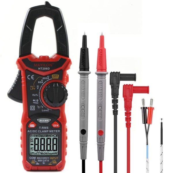- Multifunctional clamp multimer: our amperemeter with automatic range, measuring AC/DC voltage, AC/DC current, frequency, duty cycle, capacity, resistance, temperature, diode, continuity, NCV, etc. Wide range of applications, perfect for home and professional use, automotive, home and industrial electrical fault detection.