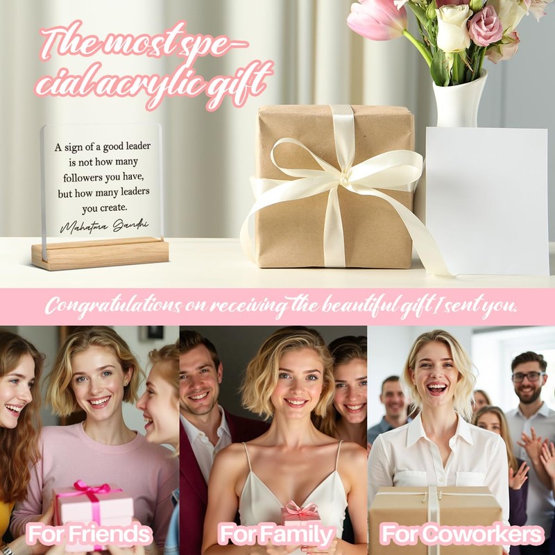 - Appropriate Size: You get a 4" x 4" acrylic Sign, a 4" x 1.5" x 0.8" wooden stand, and a gift box., perfect for desk accessory or put on shelf.