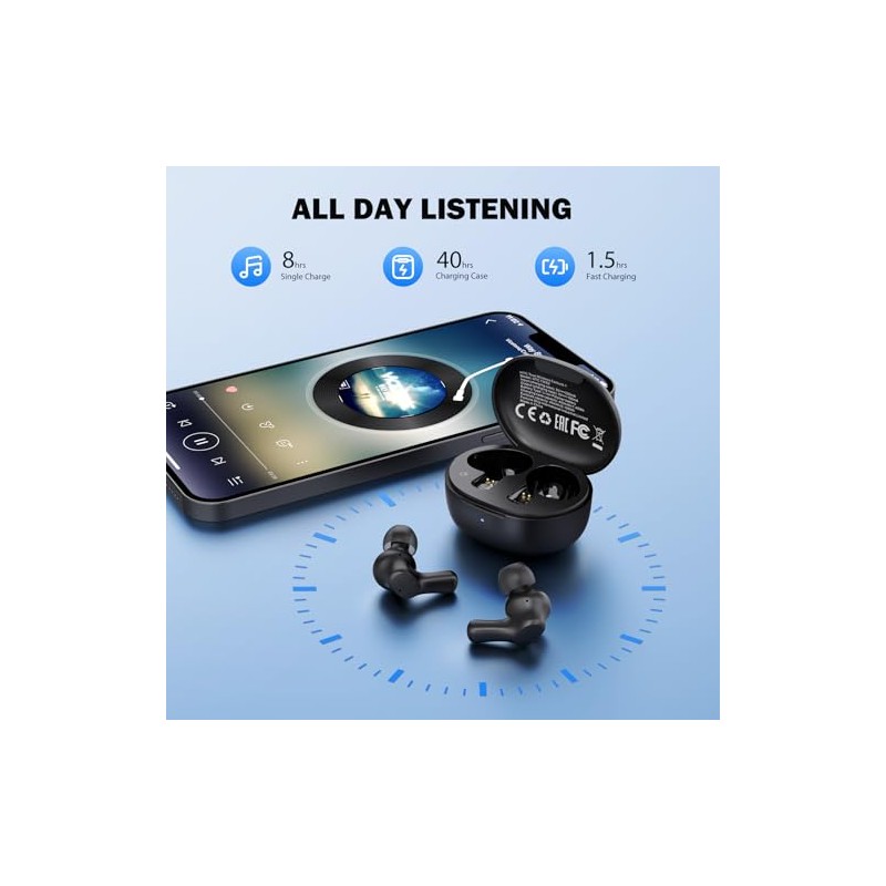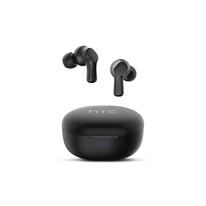 HTC Audífonos Inalambricos Bluetooth 5.3, 40 Horas de Batería, Carga Rápida, Hi-Fi 14mm Drivers Dinámicos, Impermeable IPX4, Llamadas Claras, Auriculares In-Ear Compatible con iOS y Android -Negro