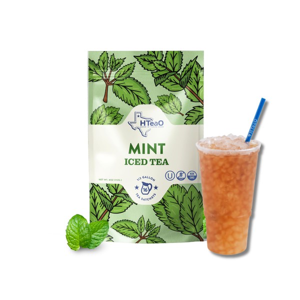 HTeaO Mint Black Tea – Texas-Style Flavored Iced Tea Bags for Summer – Instant Ice Tea Packets for Quick Brew - Loaded Tea Sachets Ready in 5 Minutes (16-Count, Makes 8 Gallons Total)
