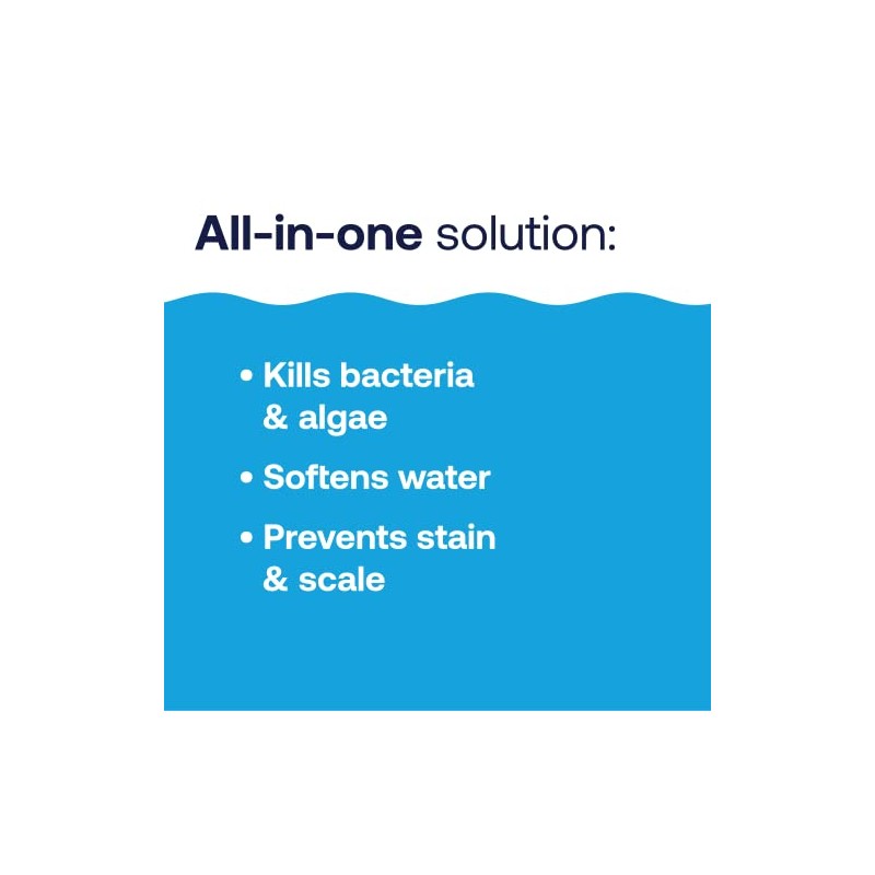 • BENEFIT: Keep your pool water clean, clear, and comfortable with this all-in-one individually wrapped tablet sanitizer and shock treatment; Kills algae and bacteria while softening, clarifying, and guarding surfaces from stain and scale