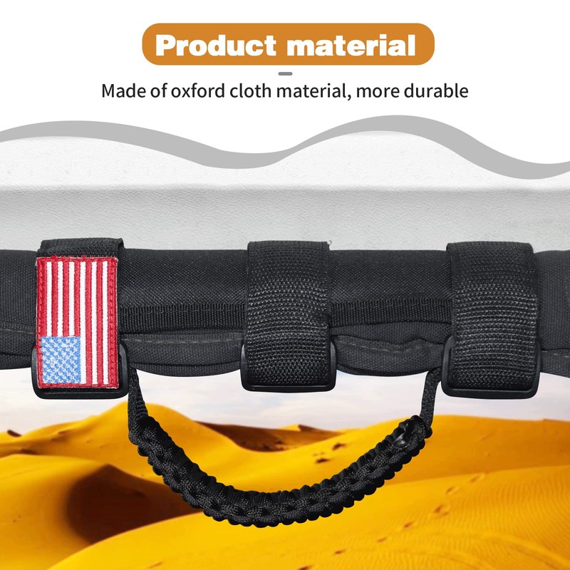 • Roll Bar Grab Handles Grip Handle Easy for Install,Velcro sewned on the product, provide strong pulling force for the grab bar.