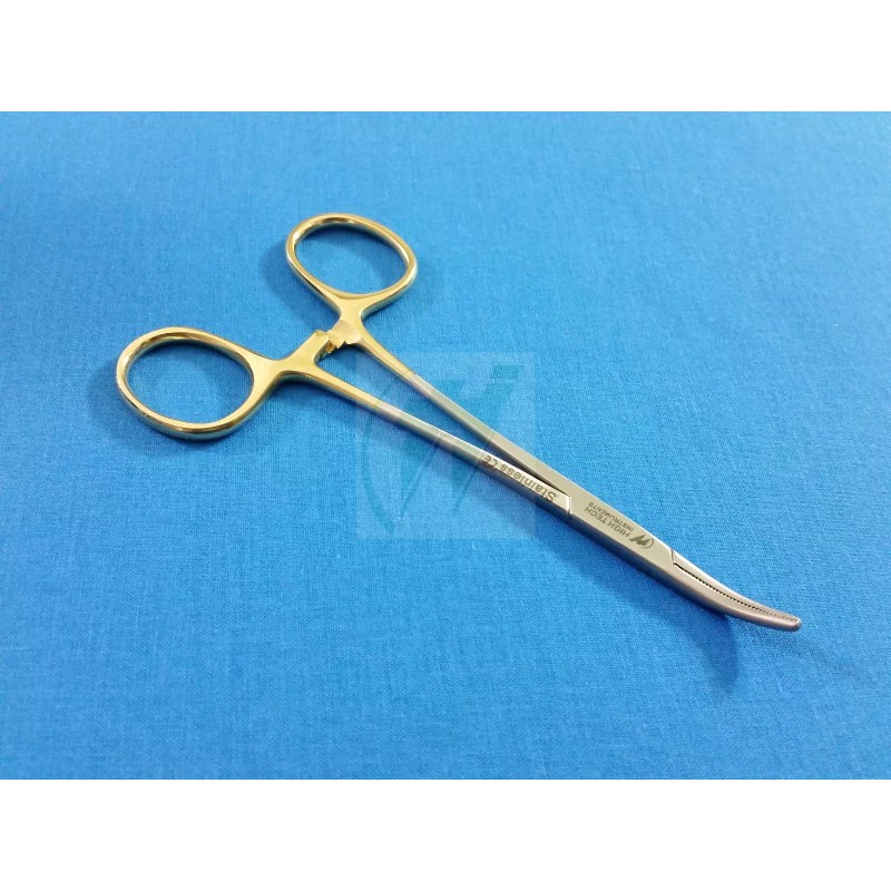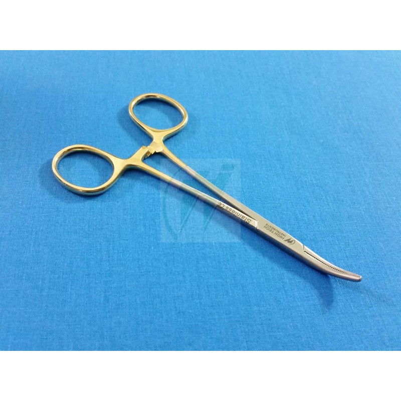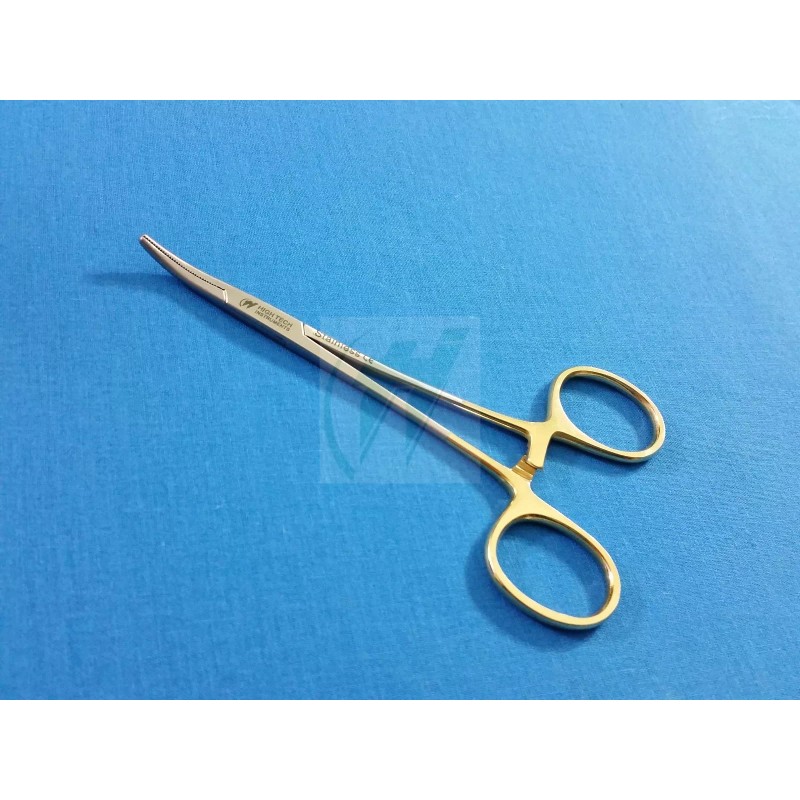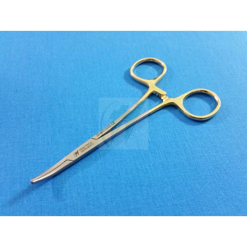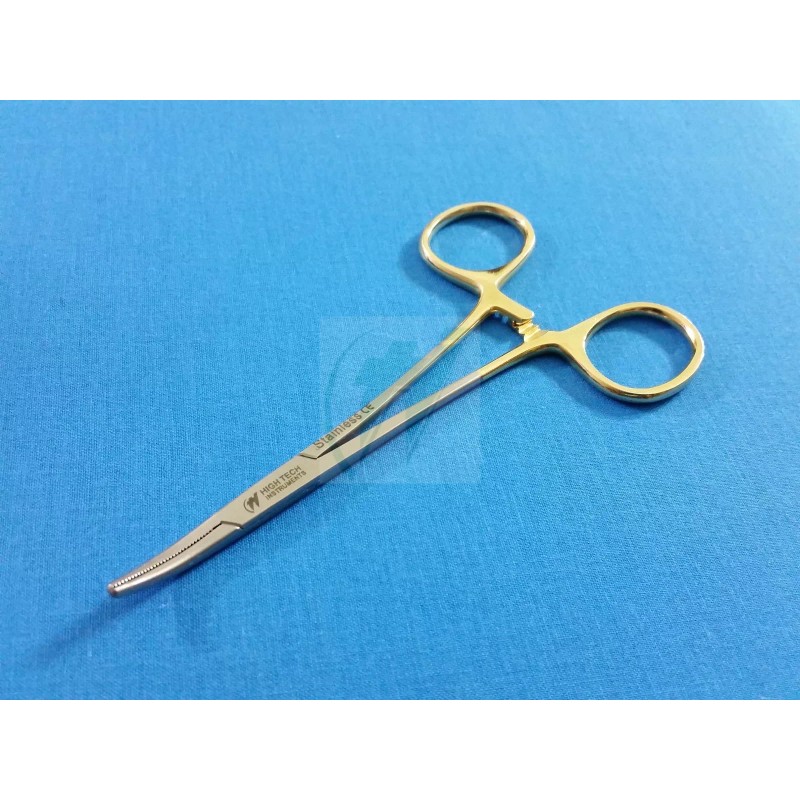 HTI AUTOCLAVABLE GOLD HANDLE PASSIVATED MOSQUITO HEMOSTAT LOCKING FORCEPS 5" CURVED