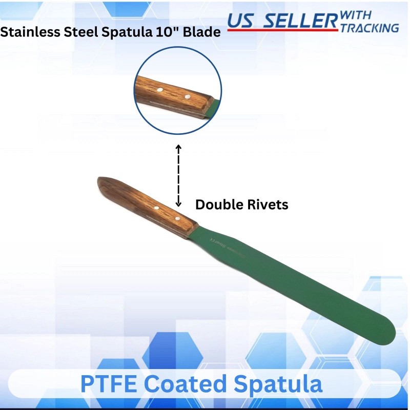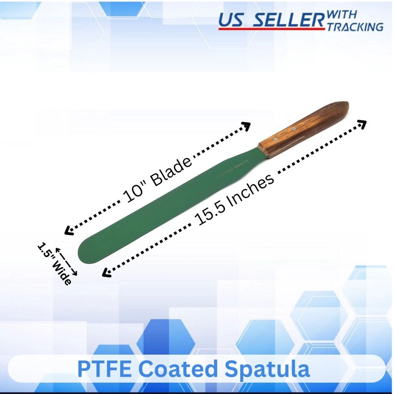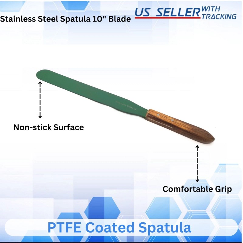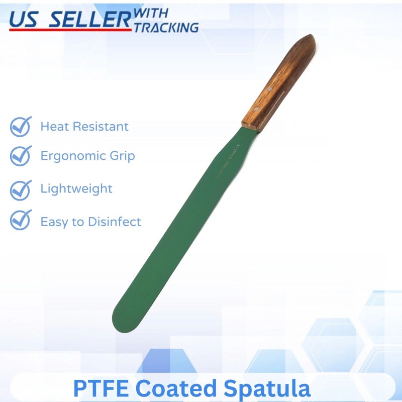 HTI PTFE Coated 10" Blade Wood Handle Lab Spatula Stainless Steel Total Length 15.5"