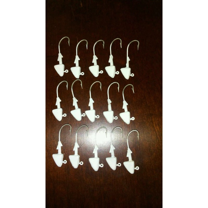 15 Pcs White Painted Shad Head Jigs, 3/8 oz