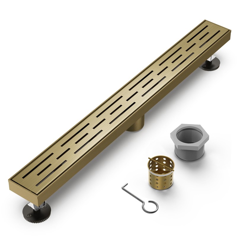 - Linear Drain Attention: Complete package includes the following accessories: 1x drain body, 1x drain cover, 1x drain key, 1x filter strainer, 1x threaded adapter, and 2x leveling feet,1x Installation manual. If any parts are missing or damaged, feel free to contact us, and we will provide a solution within 24 hours.