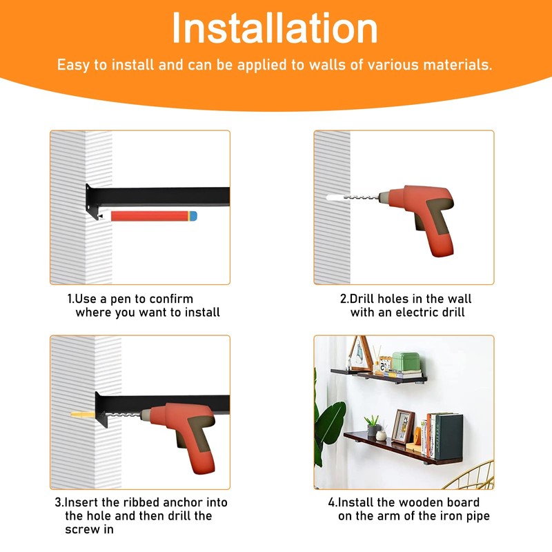 - EASY TO INSTALL: Installing these bookshelf brackets is very easy and requires no expertise. With just a few simple tools, you can have your floating shelves installed in no time and personalise your room.