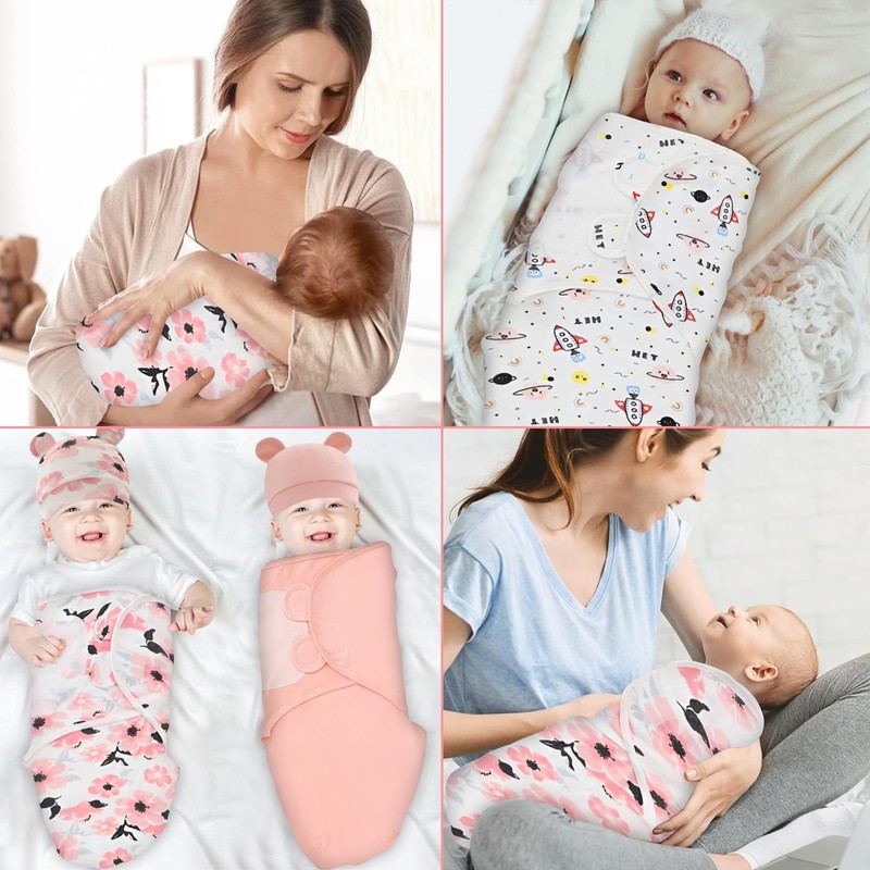 HTRTRR Baby Swaddle, Newborn Cotton Swaddle, Swaddle Wrap, Suitable for Both Babies and Toddlers for Swaddling 0-6 Months (Pink Collection for Baby Girls)