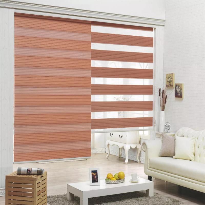 HTTMT- Zebra Roller Blinds [(W)28“ x (H)72”] Brown, Cordless, Dual Layer Shades,