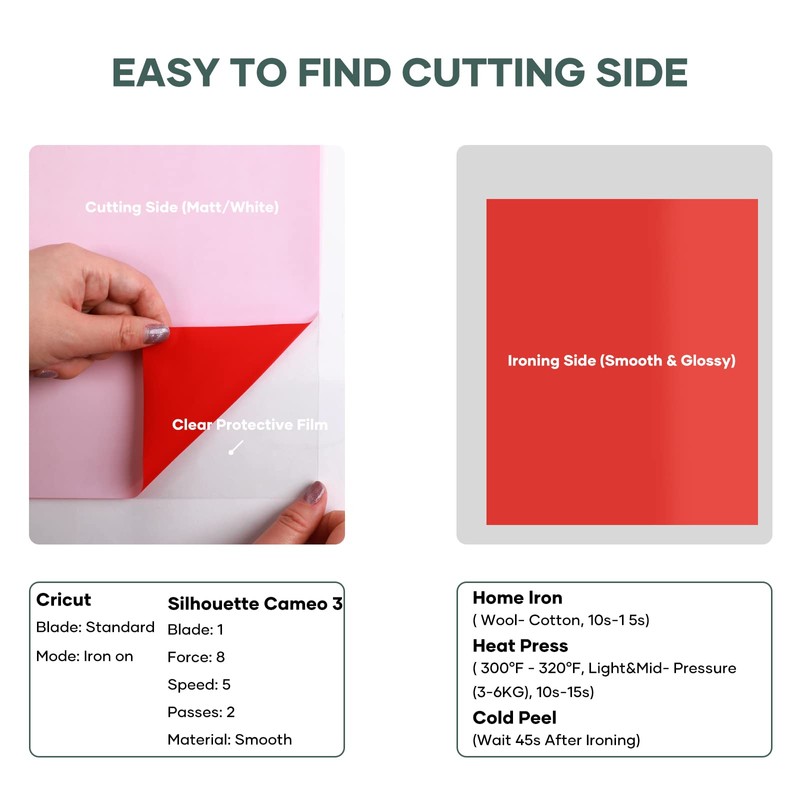 - 💗 SUITABLE FOR BEGINNERS: Our htv vinyl is equipped with Teflon, and comes with a manual, which is especially suitable for beginners. Both a heat press and a household iron can help heat transfer vinyl transfer perfectly to clothes after using the recommended ironing parameters.
