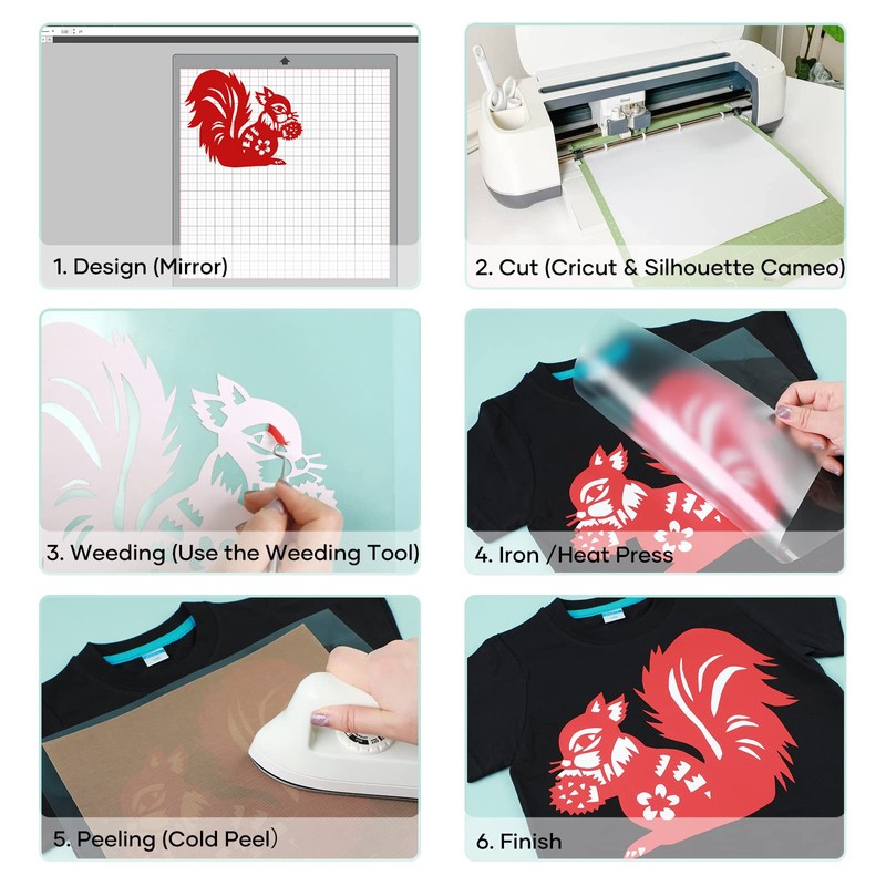 - 💗 EASY TO CUT & WEED: Results of many experiments and cuttings, our heat transfer vinyl perfectly matches most of the cutting machines on the market, even the small details can be cut smoothly and quickly, allowing you to complete your work and designs with ease. We always recommend testing the htv vinyl bundles parameters for your pattern before cutting.